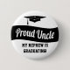 Zeigen Sie der Welt, wie stolz Sie von Ihrem Neffe- oder Nichten-Abschluss sind. Dieser stolze Entwurf der grafischen Kunst Onkelknopfes umfaßt eine schwarze Abschlusskappe, schwarzes Band mit den Wörtern "stolzer Onkel" und der Text, den mein Neffe ist, schloss ab! . Unterer Text kann zu anderer Personifizierung geändert werden: Meine Nichte ist abschloss! , So stolz auf meinen Neffeen, so stolz auf meine Nichte ETC… groß für alle Arten Abschlusszeremonien, -Partys und -ereignisse. Vervollkommnen Sie für Kindergarten, mittlere Schule, Highschool, Uni, Universität uni Absolventschule, Kriegsakademie, Berufsschule, Krankenpflegeschule, juristische Fakultät, zahnmedizinisch, Schule, medizinische Schule und mehr. Zeigen Sie Ihren Stolz!