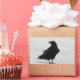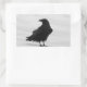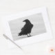 Ein allgemeiner Rabe steht stolz gegen einen Hintergrund des schneebedeckten Weiß. Der Rabe ist der offizielle Vogel des Yukon-Gebiets, in Nordkanada.