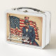 Eine verwitterte, aber stolze Figur steht vor einer zerrissenen US-Flagge - seine Anwesenheit ist ein Tribut an den anhaltenden Geist der Freiheit, der Widerstandskraft und des amerikanischen Traums. Dieses Bild erfasst das Wesen des Unabhängigkeitstages mit poetischer Würde und patriotischer Stärke.