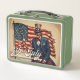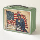 Eine verwitterte, aber stolze Figur steht vor einer zerrissenen US-Flagge - seine Anwesenheit ist ein Tribut an den anhaltenden Geist der Freiheit, der Widerstandskraft und des amerikanischen Traums. Dieses Bild erfasst das Wesen des Unabhängigkeitstages mit poetischer Würde und patriotischer Stärke.