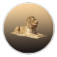 Bräune und braune Darstellung eines geschnitzten Steinlöwen auf einem Hintergrund der gleichen Farben.