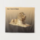 Bräune und braune Darstellung eines geschnitzten Löwen (Panthera leo) auf einem Hintergrund der gleichen Farben. Fügen Sie Ihren eigenen Text hinzu.