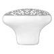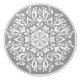Dieses weiße Mandala sitzt auf einem grauen Hintergrund. Neutral, also fühlt es sich an, als könnte es überall hingehören. Teil der Sammlung Pras Mandala.