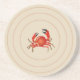Sandstein Untersetzer wird mit einem Kunstdruck einer roten Krabbe gezeigt. Passen Sie dieses Objekt an oder kaufen Sie, wie es ist.