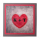 Stonealkes Herz in Grau und Rot Mit Monogramm Fliese