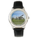 Uhr, Klassische Damenuhr mit schwarzen Lederarmband