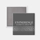 Breiten- und Längenkoordinaten für den Standort von Stonehenge, einem UNESCO-Standort in Salisbury, Schlicht in Wiltshire, England. Quadratischer Magnet mit silber-keltischer Randverzierung auf dunkelgrauem Hintergrund