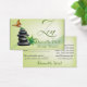 Die Zen Contemporary Wellness-Center and Therapy Massage Therapeut Geschenkgutschein Business Card bietet einen Schmetterling, Hot Stones und Bambus Blätter