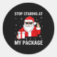 Stop Staring At My Package Christmas Adult Humor F Runder Aufkleber