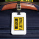 Stopp Femtrade Zeichen gelb Gepäckanhänger