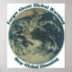 Ein dümmes, graues Foto Erde aus dem Weltall mit den Worten Vergessen Sie die globale Erwärmung - Stoppen Sie das globale Dimming, das sie umgibt.