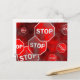 Rote strukturierte Hintergrundbild mit einer Montage von Straßenstoppschildern. Bilder auf verschiedenen Geschenken und Produkten erhältlich.