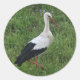 Stork, der auf der Wiese nach einem Imbiss sucht.