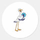 Storch als Musiker mit Tambourine Runder Aufkleber
