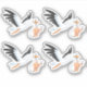 Ein Storch trägt ein Baby in einem Bundle. Das Baby nimmt ein Selbstbedienungsgerät mit einem Mobiltelefon. Set von 4 Aufklebern.