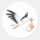 Storch, der ein Baby-Paket trägt Runder Aufkleber