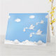 Storch mit Baby auf blauem Himmel Gruß Karte Papier Stil fliegen