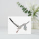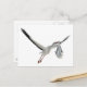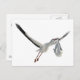 Klassische Darstellung eines Wirbelsturms im Flug, der ein Neugeborenes auf weißem Hintergrund liefert. Einige Kartenversionen haben den Slogan "Bald kommen!".