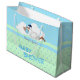 Storch mit einem Niedlichen kleinen Babyjungen Große Geschenktüte