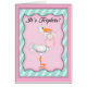 Mit dieser rosa und grünen Karte mit einem Storch, der drei Mädchen hält, verkünden Sie Ihre kleinen Freudenbündel.