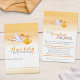 Storch mit orangefarbenen Babyduschkarten