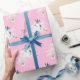Storch und Baby auf rosa Geschenkpapier