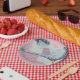 Diese entzückende Fliegenstorch- und Babymädchenpapier-Partyplatte ist jetzt im Künstler, Produktgalerie Susans Payne-Trutnas verfügbar.