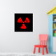 Schwarzes Poster mit verwittertem rotem Strahlungssymbol.