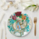 Elegantes, farbenfrohes, Vintages Blumendesign mit einem Baby und einem fliegenden Storch inmitten des herrlichen romantischen Rosa, der rote Rosen, der aquamarinen blauen Frühlingsblumen und dem leuchtenden 3D-Edelstein von Bulgan Lumini (c). Leicht mit eigenen Texten und Anregungen für Babyduschen, Kindergeburtstagsfeiern oder einfach nur über alle Veranstaltungen, die Sie wünschen!