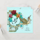 Elegantes, Vintages Blumendesign mit einem Baby und einem fliegenden Storch inmitten des wunderschönen Rosa,der rote Rosen,der aquamarinen Blüten von Bulgan Lumini.