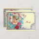 Elegantes, farbenfrohes, lebendiges Vintages Blumendesign mit einem Baby und einem fliegenden Storch inmitten des herrlichen romantischen Rosa, der rote Rosen, der aquamarinen blauen Frühlingsblumen und einem leuchtenden 3D-Gemstein von Bulgan Lumini (c). Leicht mit eigenen Texten und Anregungen für Babyduschen, Geburtstagspartys oder einfach alles was Sie sich wünschen!