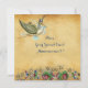 Elegantes antikes mittelalterliches Pergament, lustig Vintages Blumendesign mit einem Baby und fliegendem Storch inmitten der schönen Rosa, Gold, rote Rosen, Frühlingsblumen und grünen Blätter von Bulgan Lumini (c).