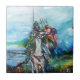 Mittelalterliche Ritter mit Pferden, farbenprächtige und ausdrucksvolle zeitgenössische figurative Malerei in lebhaften blauen, roten, grünen, braunen Farben, Aquarell von Alessandro Lumini 1989 Inspiriert aus der Legende von König Artus und den Rittern des Runden Tisches. Dieses coole und künstlerische Design ist auch ein wunderbares Geschenk für Weihnachten und besondere Anlass.