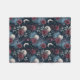 Ein traumhaftes Fallmuster mit ätherischen Monden und großen Bordeaux blüht in einem regnerischen Himmel auf dunkelblauem Hintergrund.