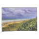 Dieses Kissencase-Set zeigt Kunstwerke, die von einem Originalfoto von ZoeSPEAK vom Jupiter Beach an einem stürmischen Tag gemacht wurden. Das Land und die Seebügel bieten von den hohen Dünen, die von den Meereswüstenbuchten bedeckt sind, einen langen Blick auf den Sand und das Meer. Der blau-graue Himmel ist voller bedrohlicher, aber schöner dunkler Wolken. In der Ferne erstreckt sich ein Steg ins Wasser.