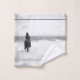 Stormy Times - Ein einsamer Fahrer am Strand mit einem stürmischen Meer, schwarz-weiß