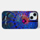 Ein mehrfarbiges (rosa, blau, lila) Fraktal-Bild auf einem Sternfeld-Hintergrund. Eine Störung im Raum-Zeit-Kontinuum. Schaltet ab! Passen Sie Ihren eigenen Text an.
