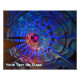 Ein mehrfarbiges (rosa, blau, lila) Fraktal-Bild auf einem Sternfeld-Hintergrund. Eine Störung im Raum-Zeit-Kontinuum. Schaltet ab! Passen Sie Ihren eigenen Text an.