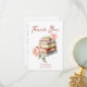 Story Buch neues Kapitel Brautparty danke Karte, Bücher lesen thematisch Brautparty Dankeschön Karte, Aquarellstapel von Büchern und Rose rot lässige Handschrift Schriftart