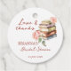 Story Buch neues Kapitel Brautparty gedruckt Dankeschön bevorzugen Tags Vorlage personalisierte Gefälligkeiten, Bücher lesen themed Brautparty Gefallen Tags personalisiert Gefälligkeiten Präsentation, Aquarellpfeife von Büchern und Rose rot lässig Handwriting Schriftart Brautparty Thema für Bücherwürmer