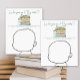 Wasserfarbe ein Stapel Bücher ist mit einem grünen Bogen verbunden. Ein neues Kapitel wird bald beginnen. Babyduschbücher, neues Kapitel.