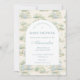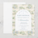 Welcome a little one with this charming storybook-inspired dinosaur design, featuring soft blue illustrations and a delicate vintage nursery feel. The playful dinosaur pattern paired with a clean arched layout creates a gentle and timeless look, perfect for a cozy and joyful baby shower. With its soft color palette and classic storybook aesthetic, this design feels warm, inviting, and effortlessly adorable—ideal for celebrating a baby boy or a whimsical dino-themed event.