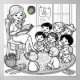 Bringen Sie Kinder mit diesem bezaubernden Farbposter, das kleine Kinder darstellt, die in einem Lesekreis auf einem Teppich versammelt sind, während ein Erwachsener ihnen ein Buch liest. Es zeigt eine Vielzahl von Kindern, die einer Geschichte aufmerksam zuhören. Ein kleiner Bücherwurm betont dieses Design.