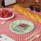 Stoßen Sie Salatessstäbchen aku roher Fische Pappteller