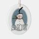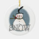 Ein Schneemann mit einem Schal und einem hohen Hocker Hut und Text, der "SNOW" auf einem Snowman Keepsake-Urlaubsornament, die Sie sicher sind, für die nächsten Jahre Liebe!