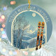 Ornament from a wonderful skiing holiday in the beautiful mountains of Stowe Mountain Vermont. This Ornament features an arch with a stunning blue-grey mountain landscape and retro ski boards in an orange tribal pattern in the foreground. The rest is in a lovely light blue tone with the location lettering in a modern font. The design is a lovely combination of retro and modern, and I hope you enjoy it!