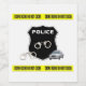 Die Kriminalitätszene von Polizeibeamten umfasst Polizist, Abzeichen, Polizeihandschellen und Kriminalitätsbügel, auf dem Don't Cross steht.