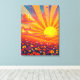 Erleuchten Sie Ihren Raum mit dem Radiant Sunset Over Whimsical Landscape Leinwanddruck. Dieses lebendige Kunstwerk besticht durch einen surrealen Sonnenuntergang in reichen Orangen, Gelb und Rosa und strahlt ein warmes Licht über ein lebendiges Feld der Wildblume aus. Durch abstrakte Elemente wie wirbelnde Wolken und verspielte Vögel wird dieses Stück zum Freude und Positivität. Ideal für Naturliebhaber, fügt es jedem Zimmer eine skurrile Touch hinzu, die eine ruhige Atmosphäre schafft, die das Wesen eines perfekten Sonnenuntergangs erahnen lässt.
