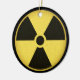 Das Strahlungssymbol, das auf Gelb, mit hellem Imitat schwarz ist, altern Sprünge. T - Shirts, schwitzt, Knöpfe, Taschen, Aufkleber, Geschenke.