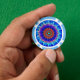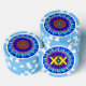 Ein mehrfarbiges Fraktal, das an eine psychedelische Krawatte erinnert; orangefarbenes Rosa und Blau auf einem dunkleren Hintergrund. Anpassen, indem Sie den Chip-Wert oder anderen Text auf der Rückseite hinzufügen.